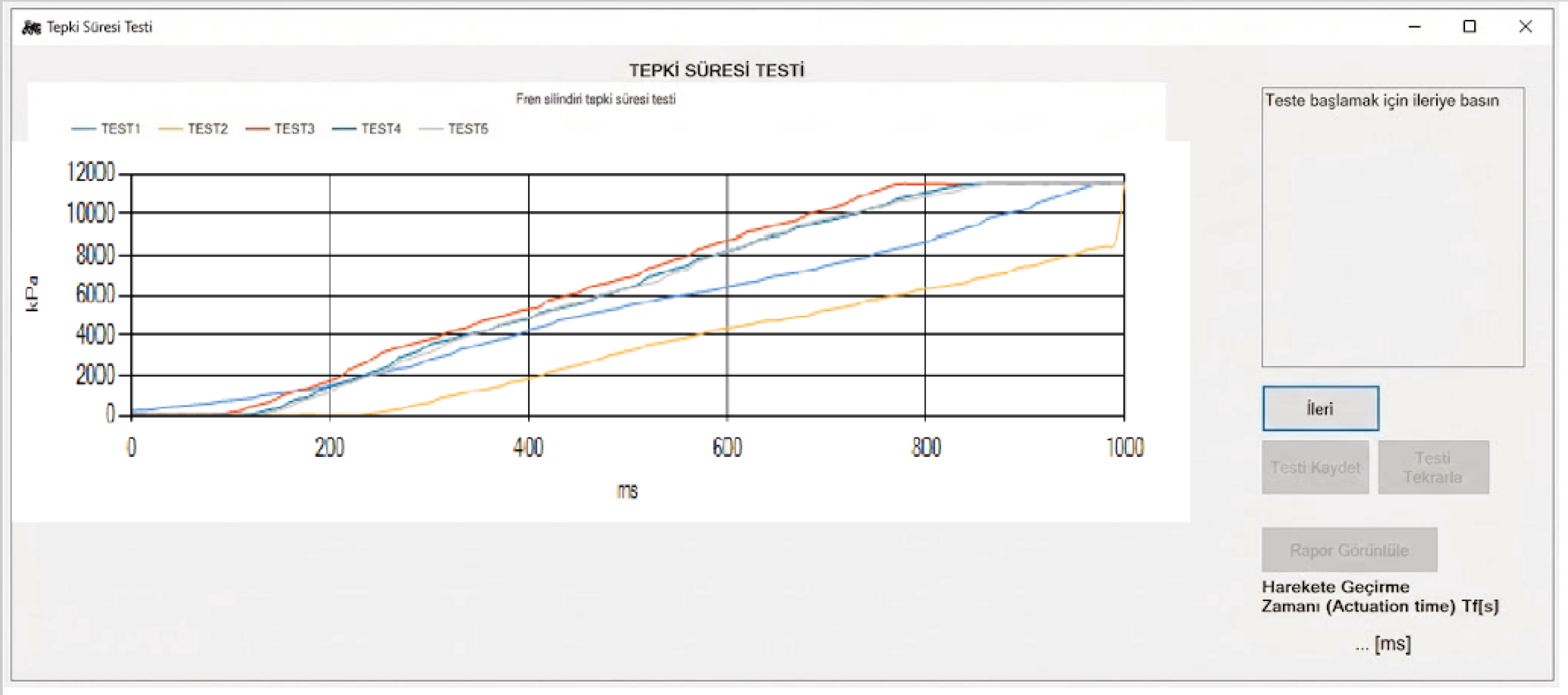 Fren pedalına basıldığı andan hedef basınca ulaşılana kadar geçen süreyi yüksek doğrulukla ölçer ve katı regülasyon zamanlama gerekliliklerini karşılar.
