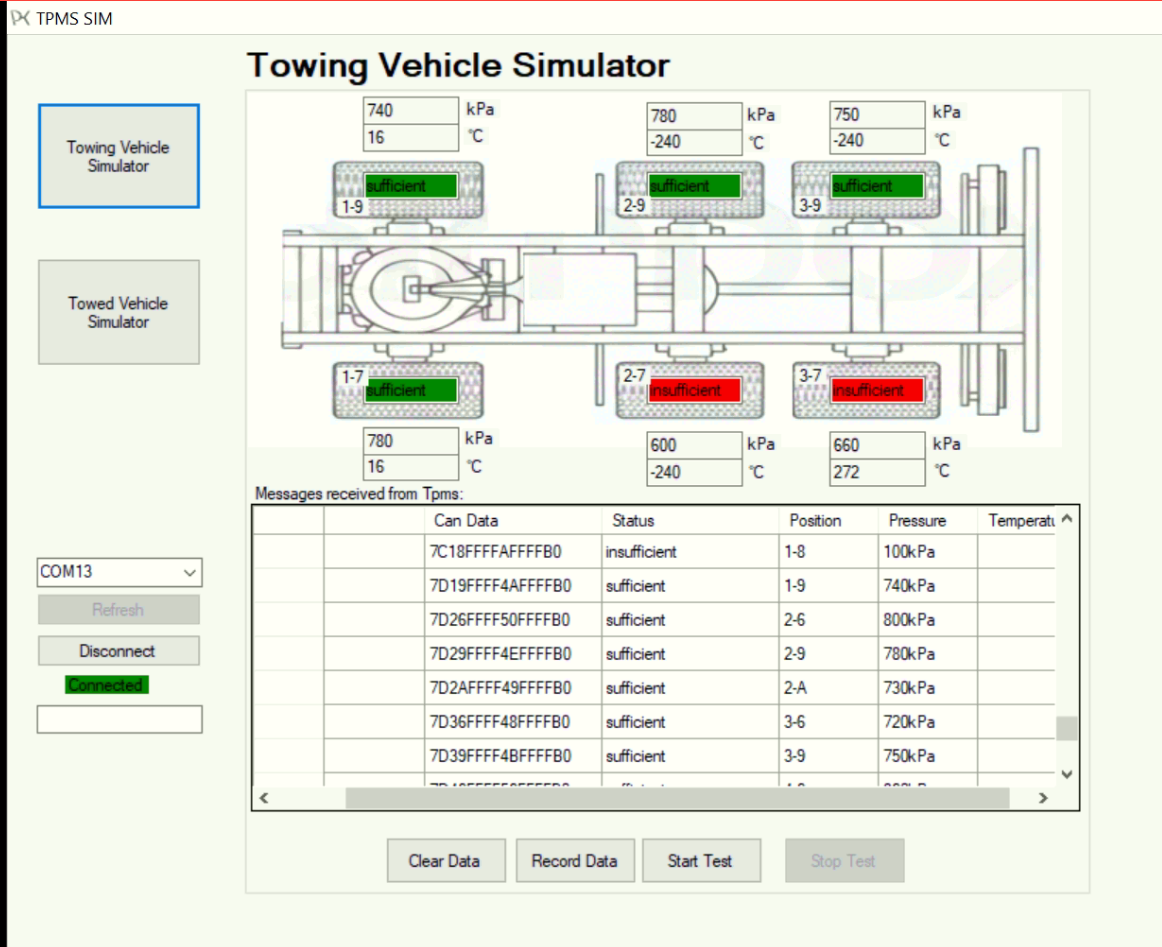 Sistem, dorse tarafından gönderilen TPMS mesajlarını yakalayan ve çözümleyen bir çekici araç gibi çalışır. Maksimum 6 tekerlek için basınç ve sıcaklık görselleştirmesi sunar ve TPMS ile ilgili tüm ağ trafiğini izler.